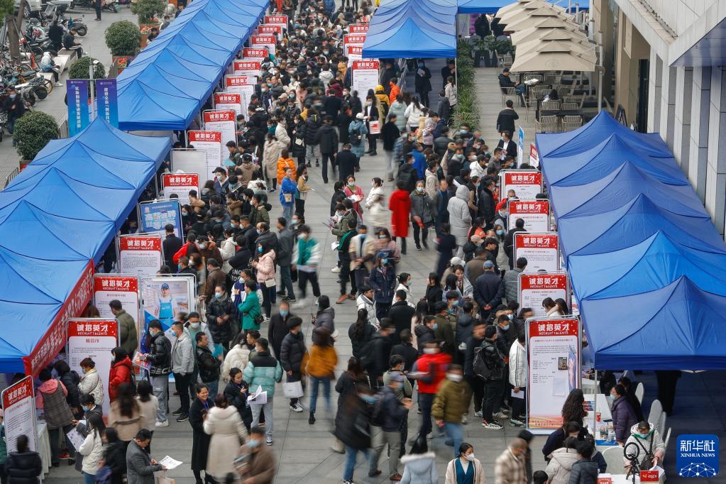 2月17日,人們在中國成都人力資源服務產業園查看招聘信息,尋找工作機會。