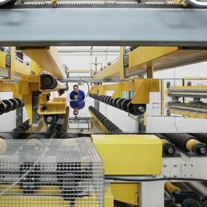 2月17日,在中建材佳星玻璃(黑龍江)有限公司車間內,工作人員在智能生產線旁巡檢。