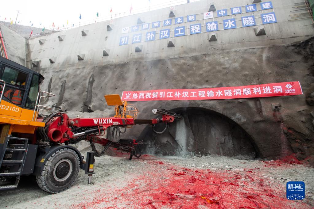 當日,隨著多臂鑿巖臺車在引江補漢工程輸水總干線出口處啟動鉆孔施工,南水北調后續工程首個開工項目——引江補漢工程正式進入主體隧洞施工階段。