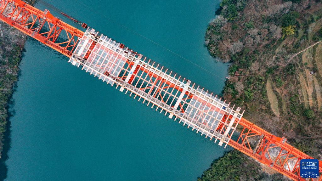 正在進(jìn)行橋面系施工的德余高速烏江特大橋(2月17日攝,無人機(jī)照片)。