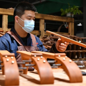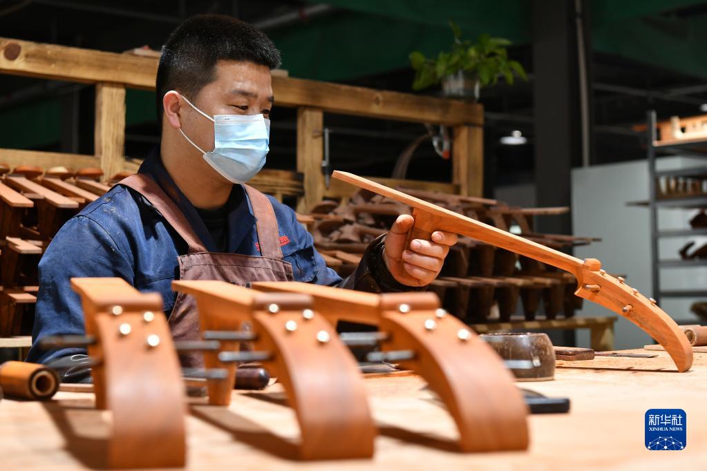 2月18日,河北省肅寧縣一家民族樂器生產(chǎn)企業(yè)的工人在生產(chǎn)車間內(nèi)制作樂器。