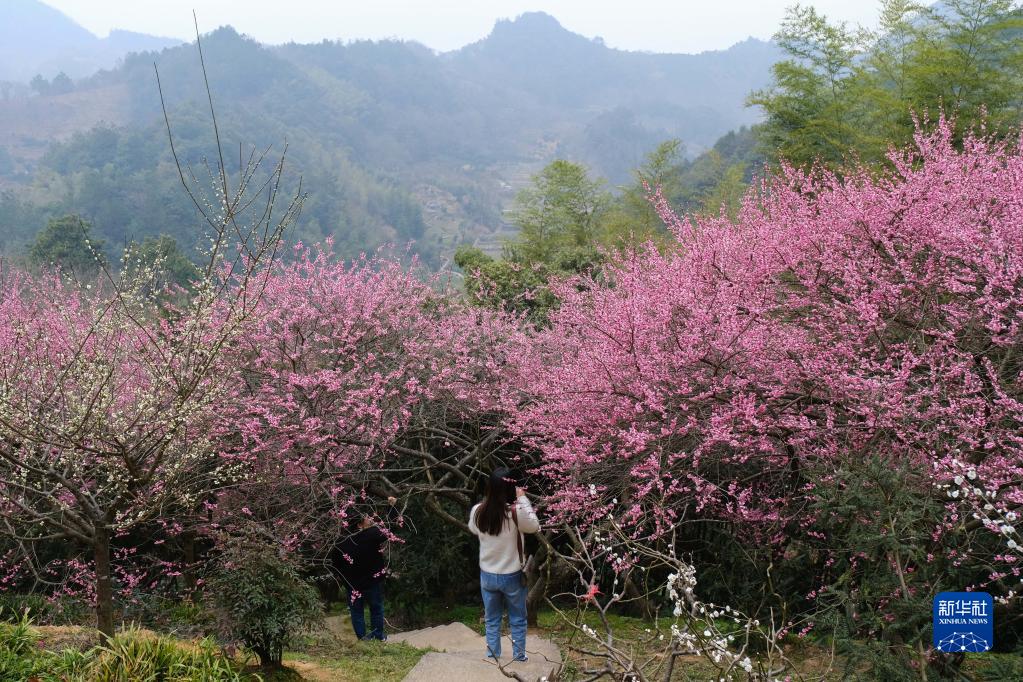 當(dāng)日是雨水節(jié)氣,浙江省諸暨市東白湖鎮(zhèn)斯宅村依山而建的斯舜梅園吸引了不少游客前來(lái)踏春賞梅。該梅園種植近500株梅樹,主要有紅梅、白梅、垂枝梅、臘梅等10多個(gè)品種的梅花,是當(dāng)?shù)剜l(xiāng)村旅游的一大特色。