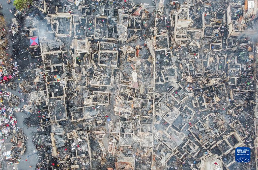 這是2月19日在菲律賓奎松拍攝的被燒毀的房屋(無人機照片)。