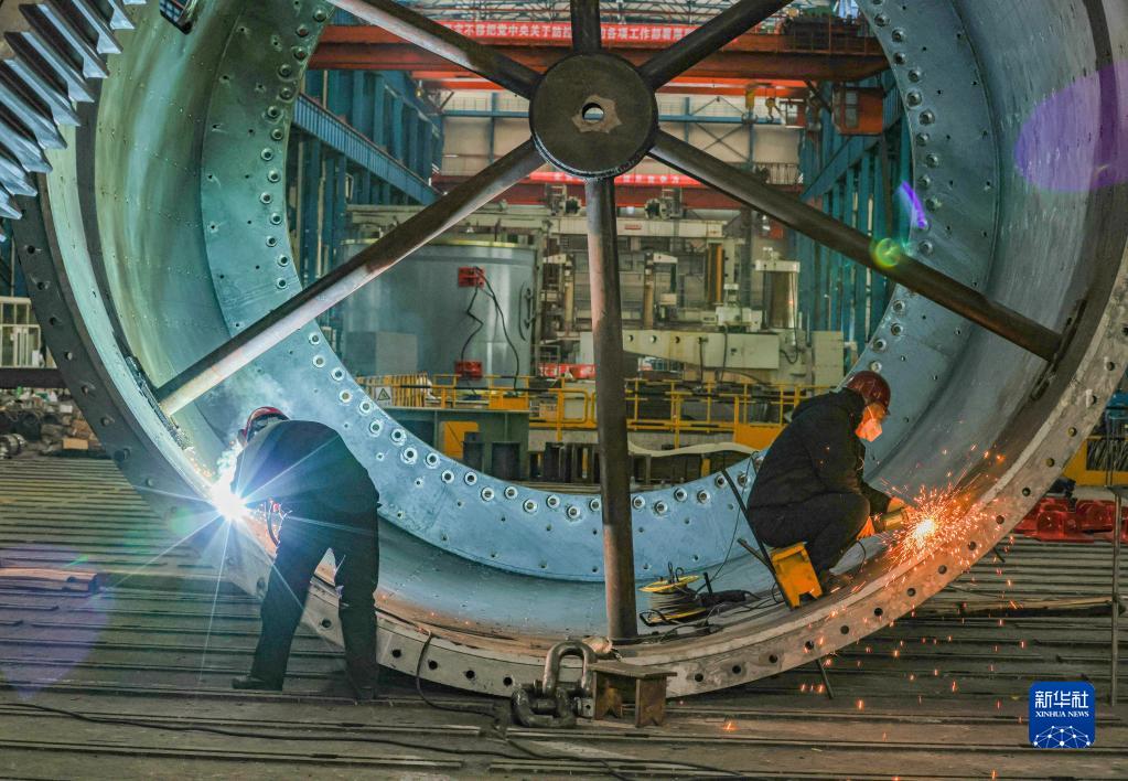 工人在位于遼寧省沈陽市的北方重工有限公司車間焊接零部件(1月13日攝)。