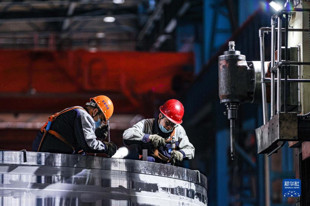 工人在位于遼寧省沈陽市的北方重工有限公司車間加工零部件(1月13日攝)。