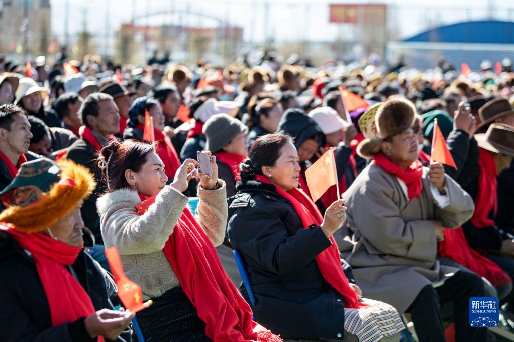 2月19日,人們在西藏拉薩市堆龍德慶區濱河體育公園觀看文藝演出。