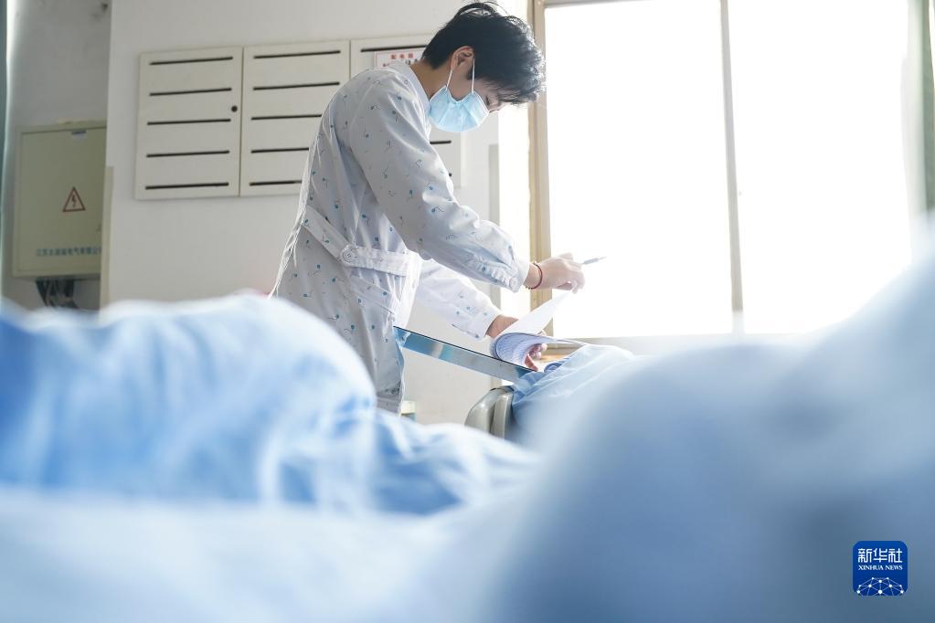 2月15日,在南通常青樂齡護理院,李楠楠填寫護理記錄表。