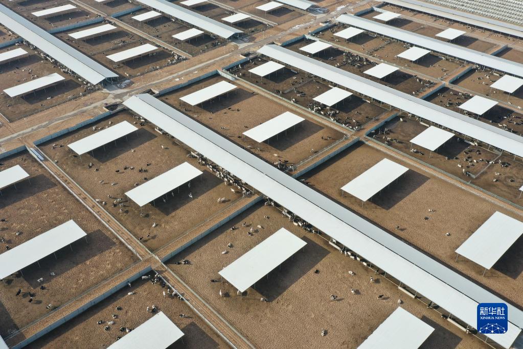 這是2月16日在武威市古浪縣生態奶牛產業園拍攝的一家企業牧場的奶牛棚圈(無人機照片)。
