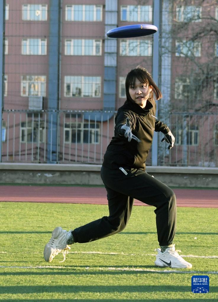 2月20日,在北京大學(xué)附屬中學(xué),學(xué)生在體育課中進(jìn)行極限飛盤練習(xí)。