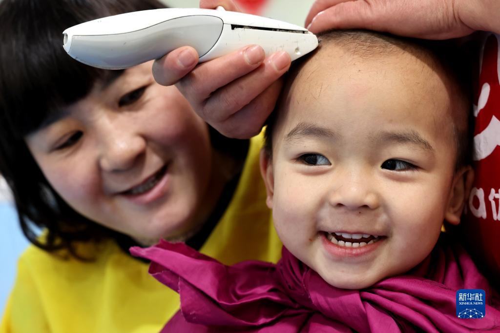 當日是農歷二月初二,許多家長帶著孩子“剃龍頭”,祈求孩子在新的一年健康成長。