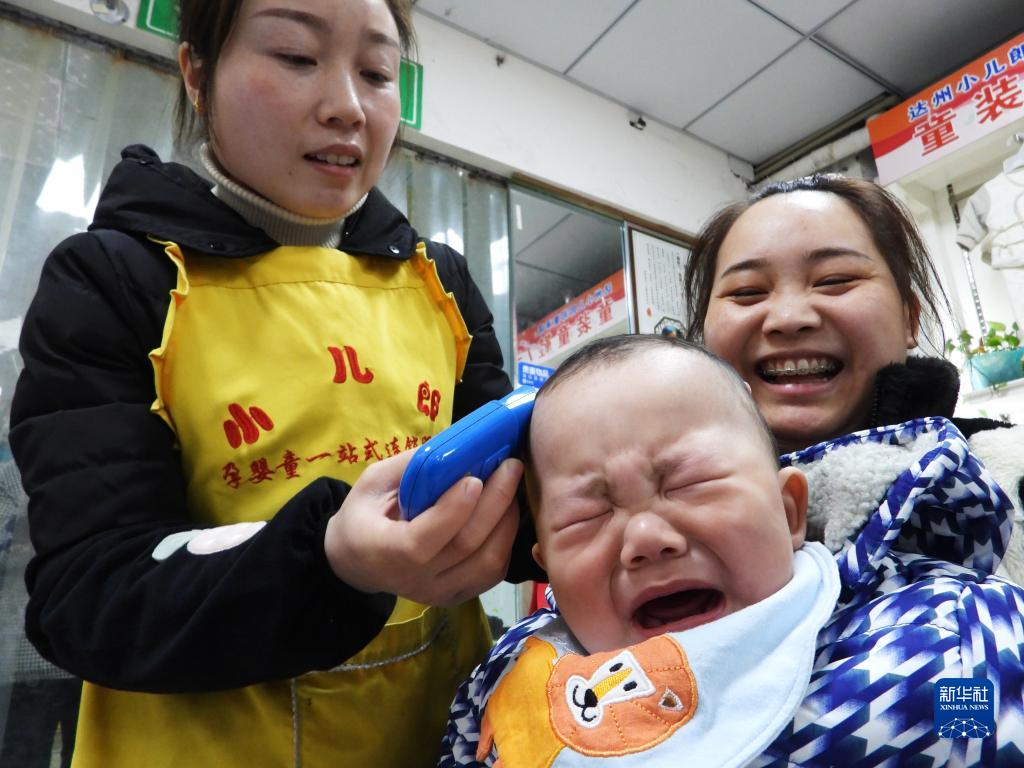 當日是農歷二月初二,許多家長帶著孩子“剃龍頭”,祈求孩子在新一年健康成長。