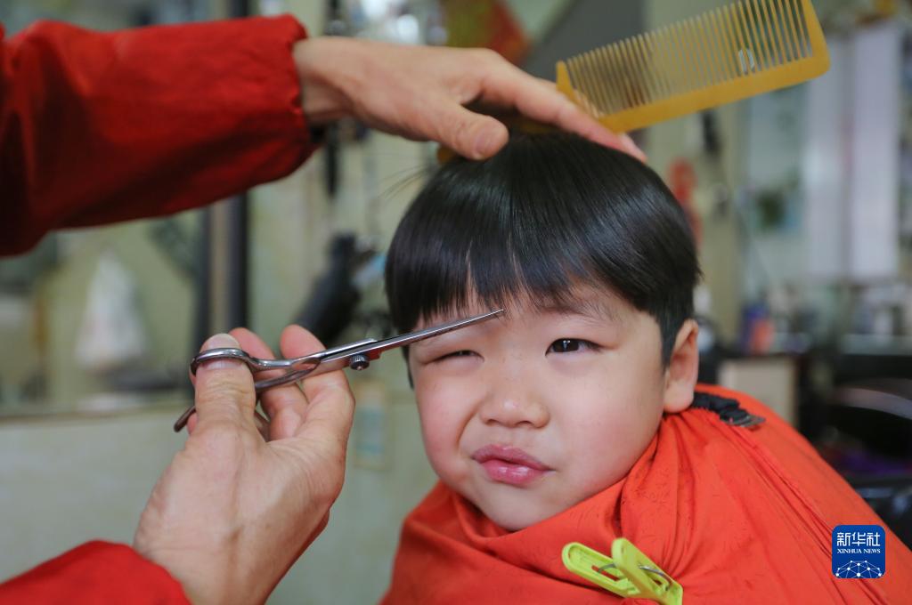 當日是農歷二月初二,許多家長帶著孩子“剃龍頭”,祈求孩子在新的一年健康成長。