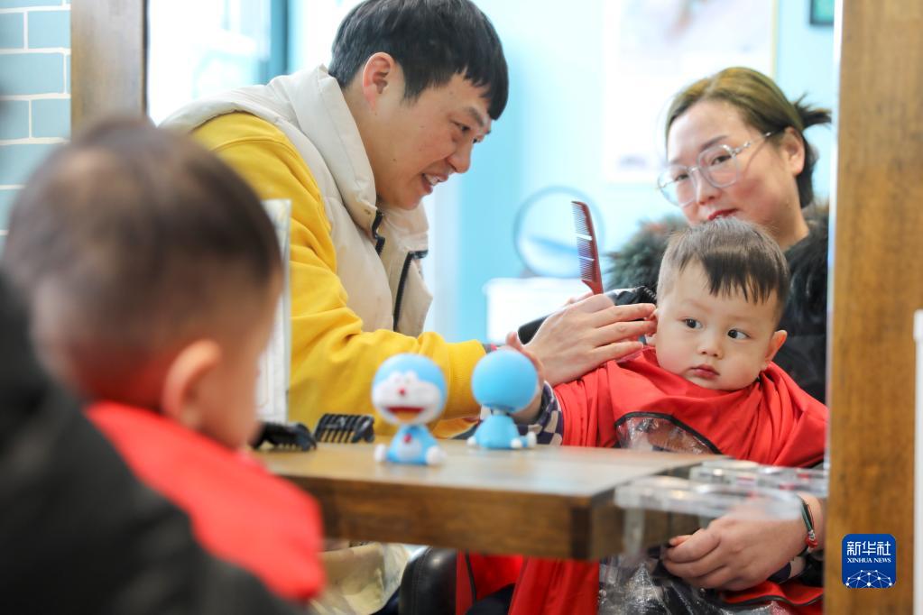 當(dāng)日是農(nóng)歷二月初二,許多家長帶著孩子“剃龍頭”,祈求孩子在新的一年健康成長。