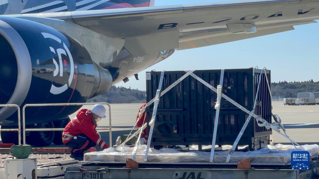 2月21日,在日本東京,大熊貓“香香”即將被送上貨運包機。