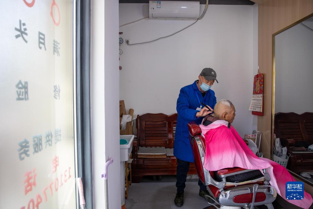 2月21日,理發師在“幸福格子鋪”內為社區居民提供理發服務。在杭州市上城區丁蘭街道的場地和設備支持下,便民服務單位免費入駐“幸福格子鋪”,為周邊社區的4萬余名居民提供小家電維修、衣物縫補、修鞋、理發等便民服務。