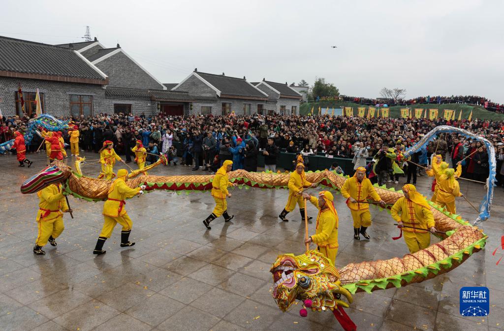 當(dāng)日,四川省瀘縣在全國重點文物保護單位——屈氏莊園前舉行瀘州市2023年“二月二·龍?zhí)ь^”民俗文化展示暨瀘縣首屆“龍文化宣傳日”活動。傳統(tǒng)的舞龍活動表達人們期盼新的一年風(fēng)調(diào)雨順、五谷豐登。