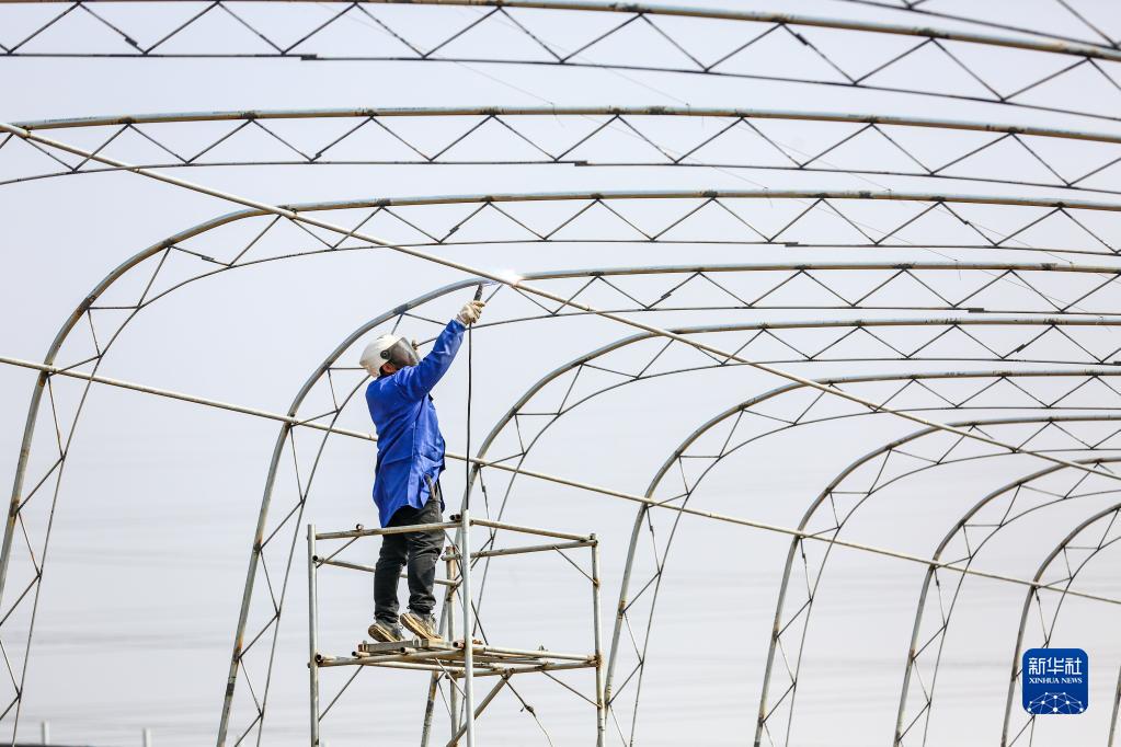 2月20日,工人在瑞昌市賽湖農場三分場建設智慧大棚。