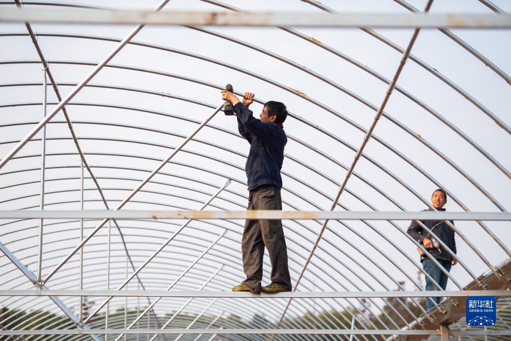 2月21日,在醴陵市東富鎮(zhèn)東富村,村民在搭建育秧大棚。