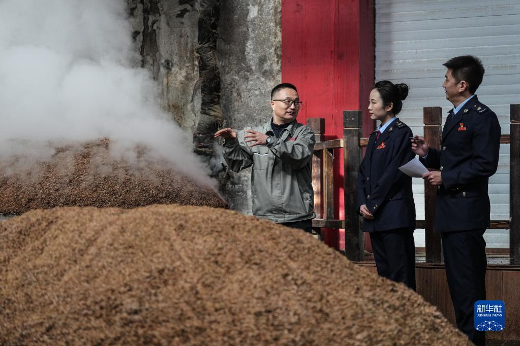 2月21日,國家稅務總局阜新市稅務局的工作人員在阜新三溝酒業的生產車間里向企業的工作人員了解生產情況,同時介紹稅務政策、解答稅務問題。