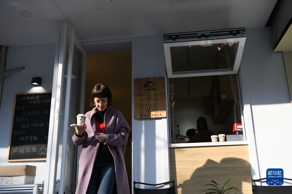 2月20日,客人在楊倩的咖啡店里購買咖啡后離開。