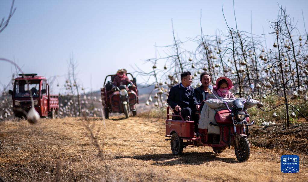 袁海波(右三)在云南省曲靖市馬龍區一種植基地了解務工人員就業需求(2月11日攝)。