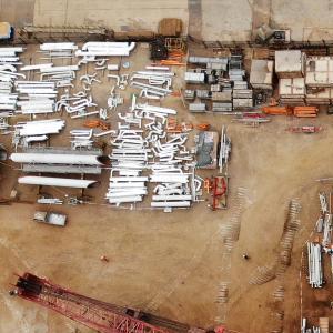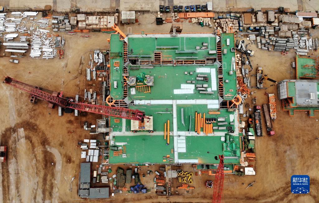這是正在建造中的渤中19-6凝析氣田一期CEPA(中心處理平臺)組塊(2月22日,無人機照片)。