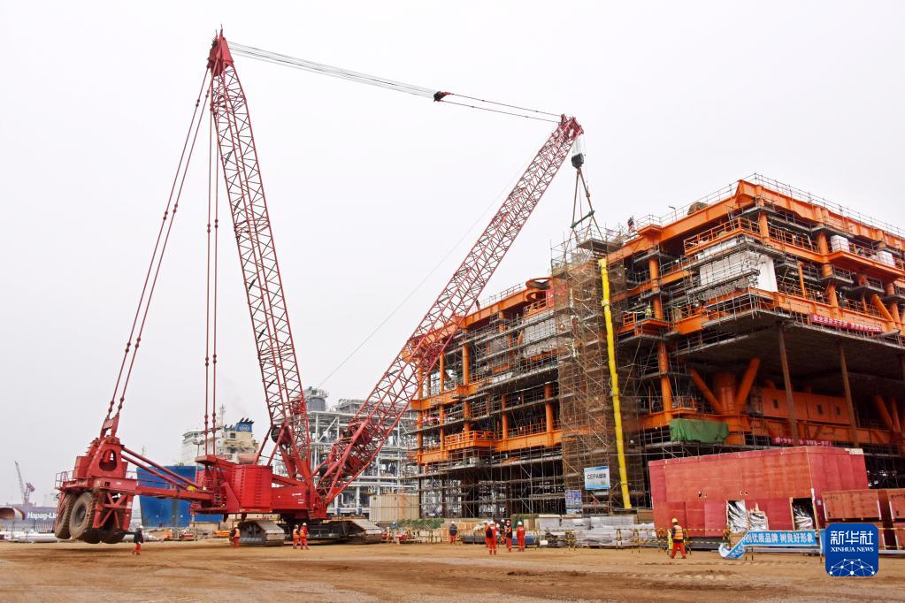2月22日,渤中19-6凝析氣田一期CEPA(中心處理平臺(tái))組塊建造現(xiàn)場(chǎng)正在進(jìn)行吊裝作業(yè)。