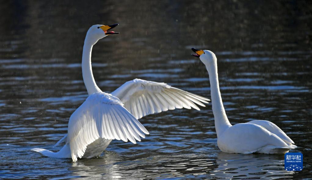 2月21日,天鵝在北票市八家子鄉(xiāng)紅村大凌河畔嬉戲覓食。