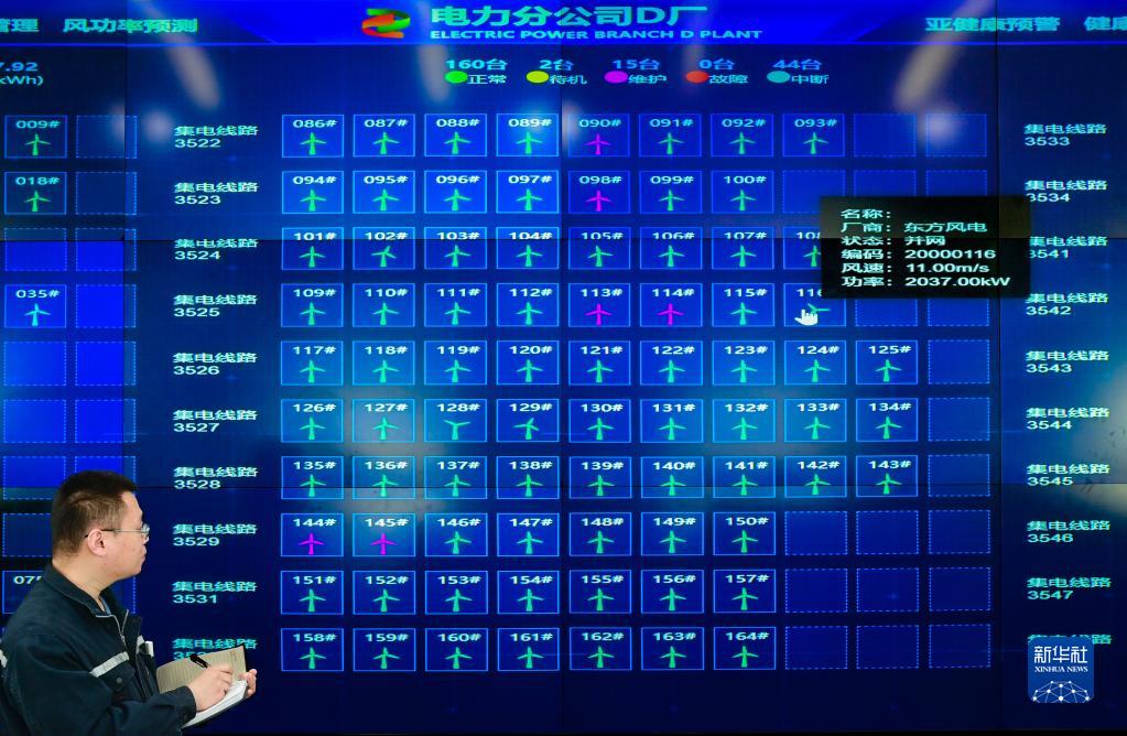 2月23日,工作人員在位于霍林郭勒市的霍林河循環經濟示范工程風電光伏基地主控室里工作。
