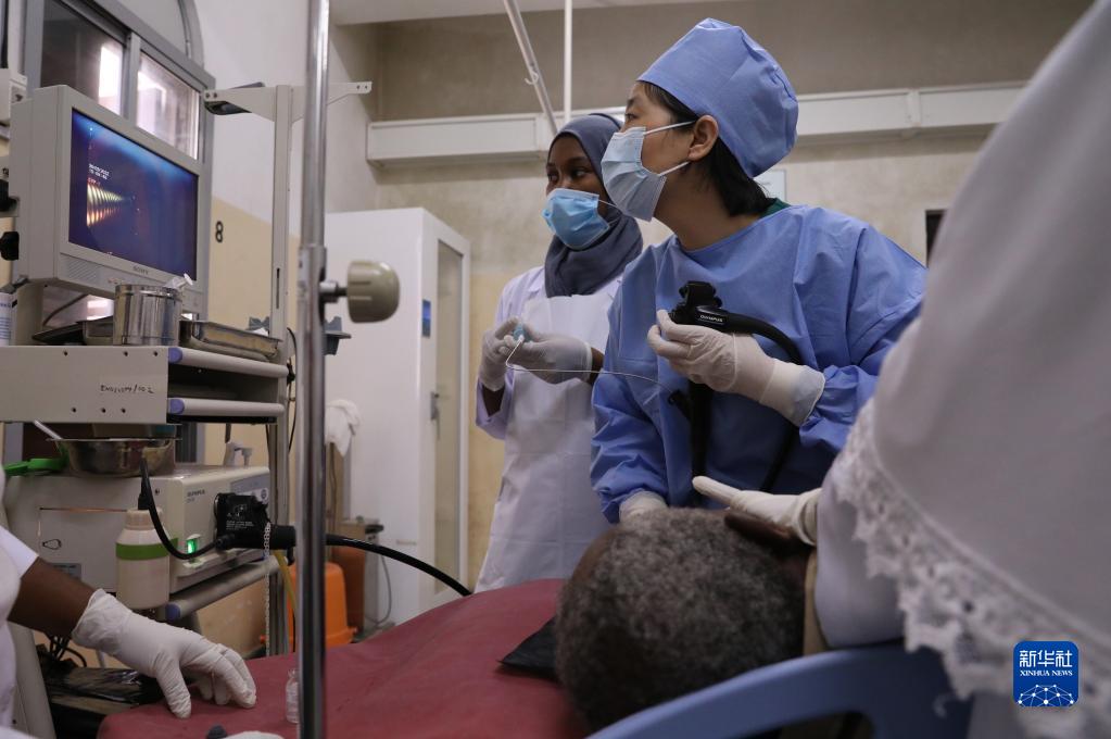 2月22日,在坦桑尼亞桑給巴爾島納茲莫加醫(yī)院,消化內(nèi)鏡中心醫(yī)生劉翠霞給病人做檢查。