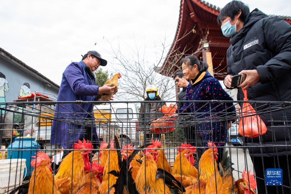 2月23日,在浙江省溫嶺市石橋頭鎮(zhèn)石橋新村,人們趁著趕集日來到集市選購。