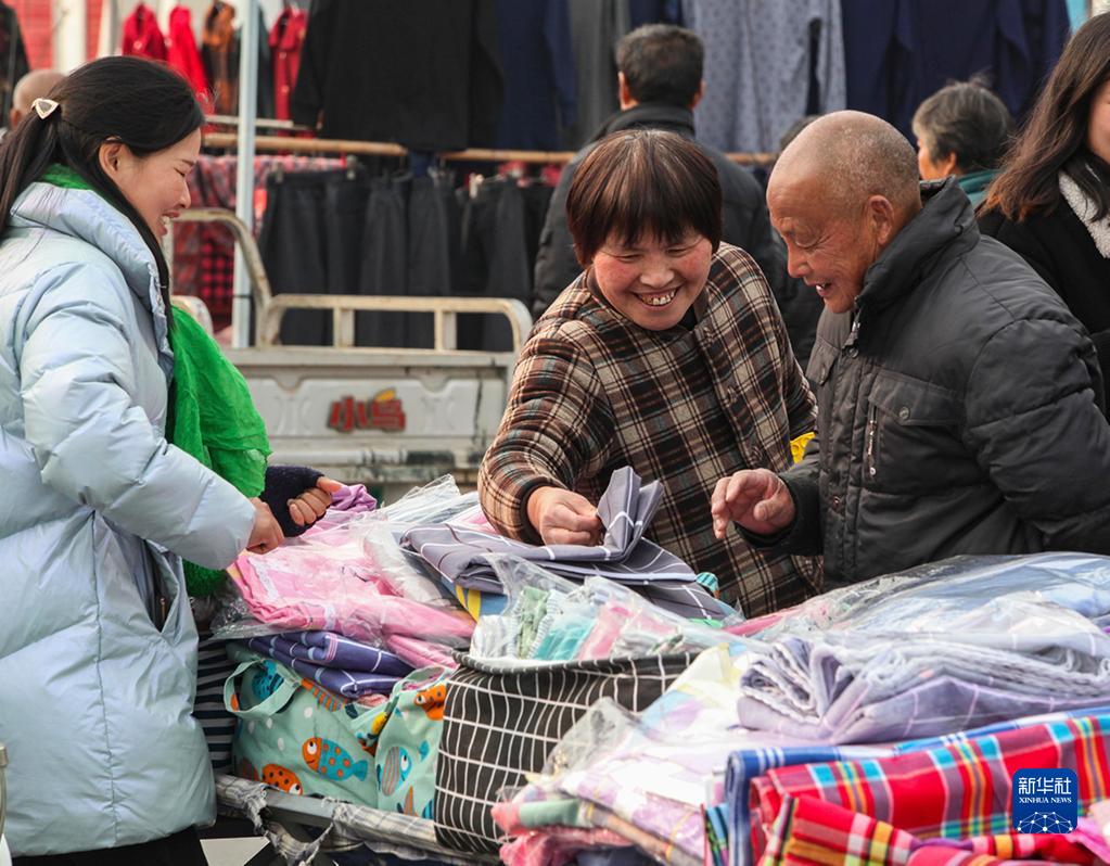 2月23日,在河南省焦作市博愛縣孝敬鎮東界溝村,村民們在集上購買物品。