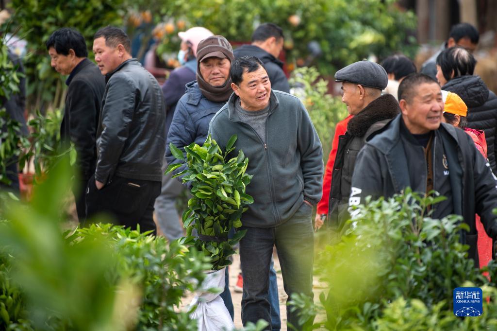 2月23日,在浙江省金華市金東區澧浦花木城苗木集市,客商在選購苗木。
