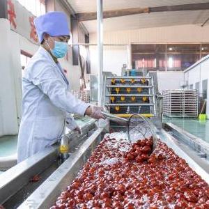 寧夏同心縣一家圓棗深加工企業(yè)內(nèi),工人對烘干后的圓棗進(jìn)行分揀包裝(2月23日攝)。