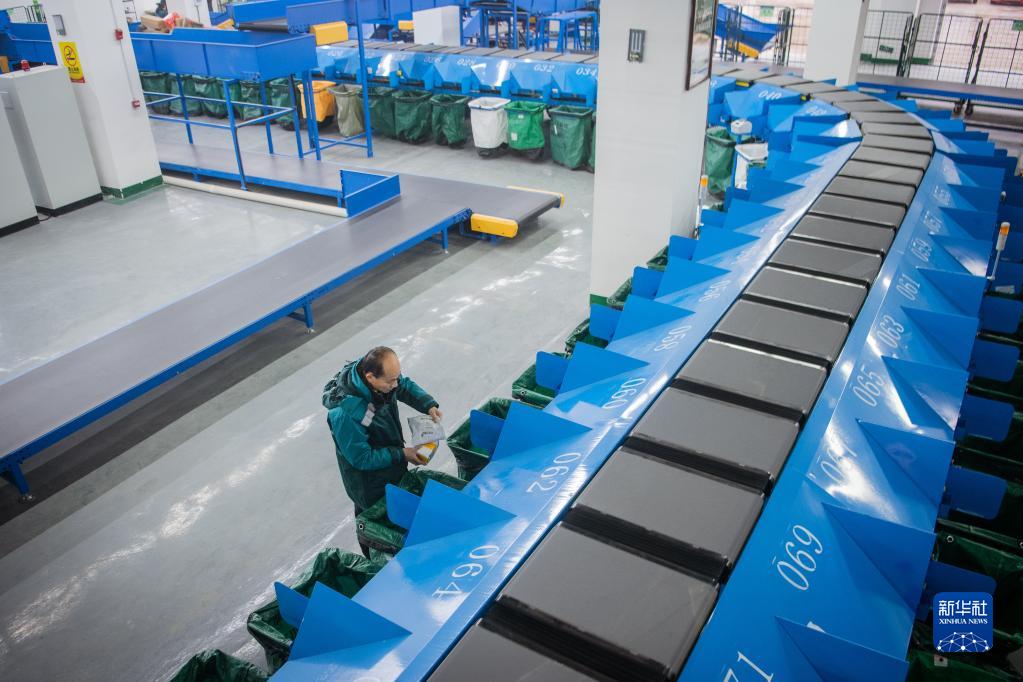 2月23日,中國(guó)郵政宣恩分公司分揀員在巡檢分揀流水線。