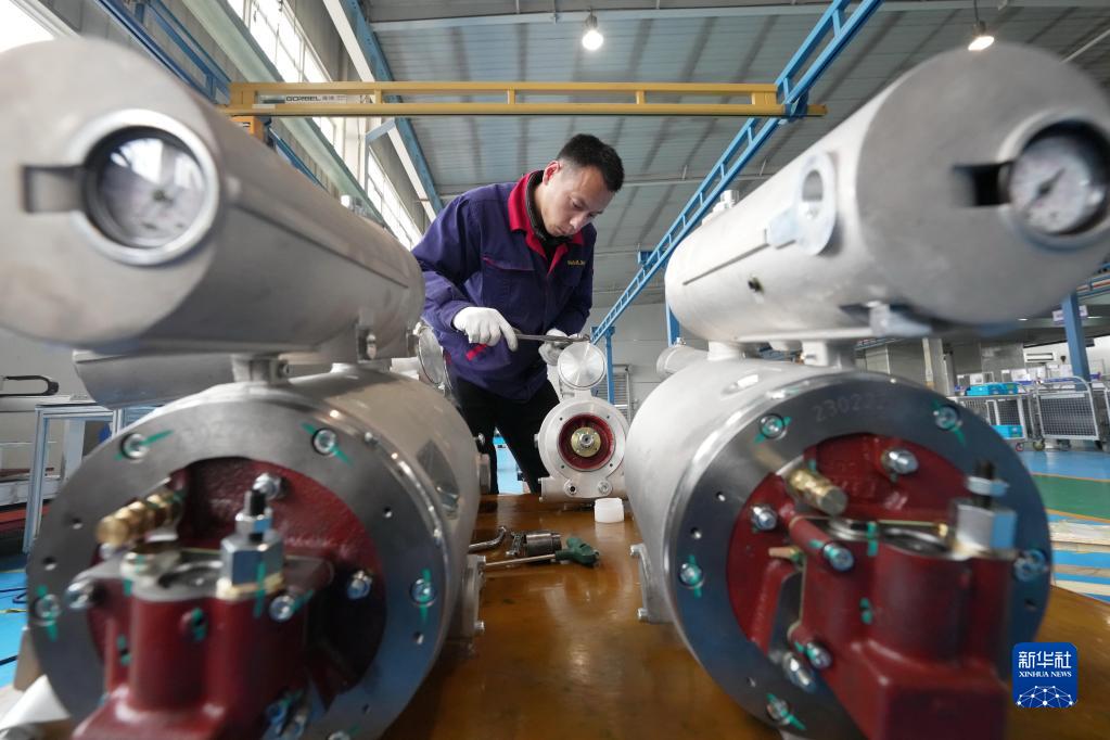 2月24日,工人在河北省元氏縣一家機(jī)電設(shè)備企業(yè)的生產(chǎn)車(chē)間工作。