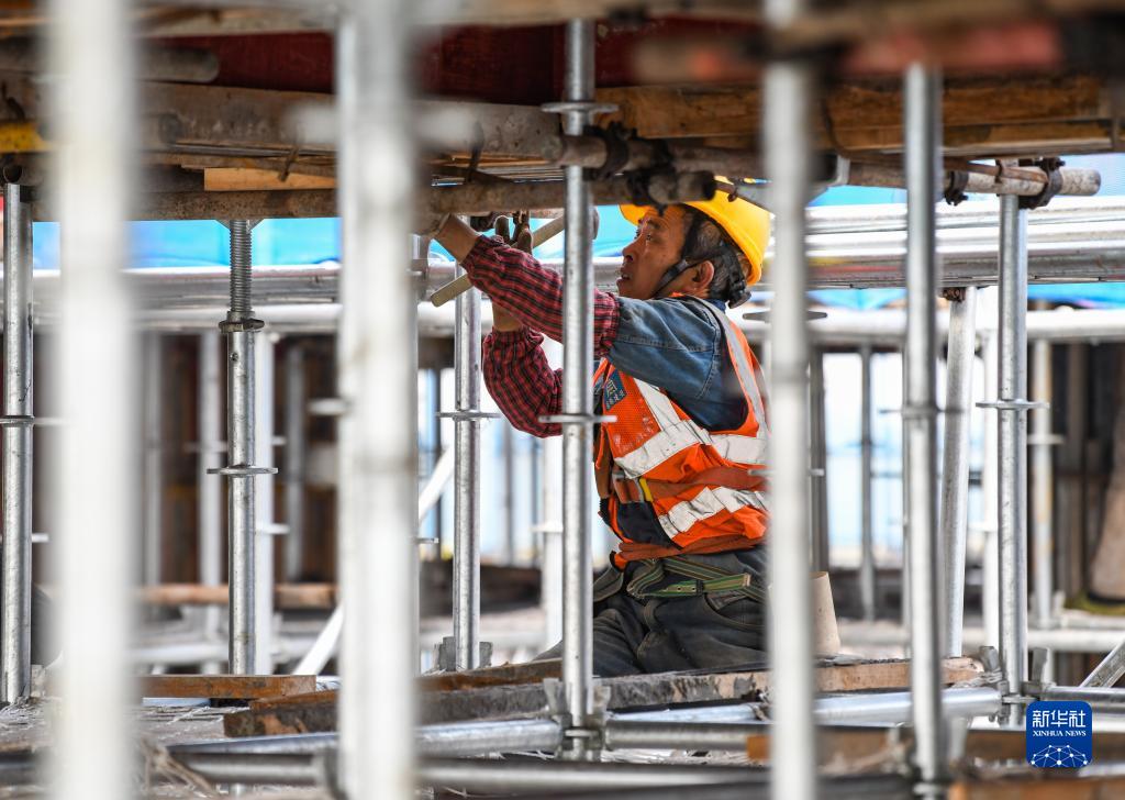 2月24日,在位于成都東部新區的四川大學華西東部醫院項目建設現場,工人在進行封頂施工作業。
