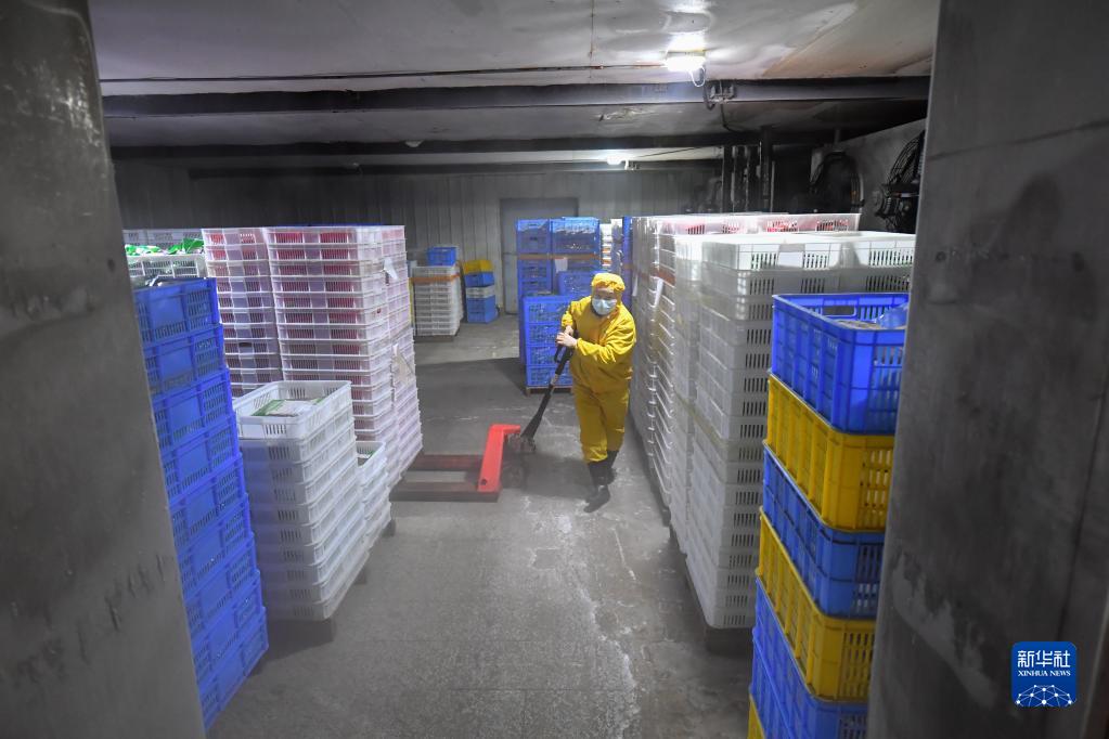2月24日,瀏陽市省級農業科技園區一家預制菜企業工作人員在冷庫搬運預制菜成品。