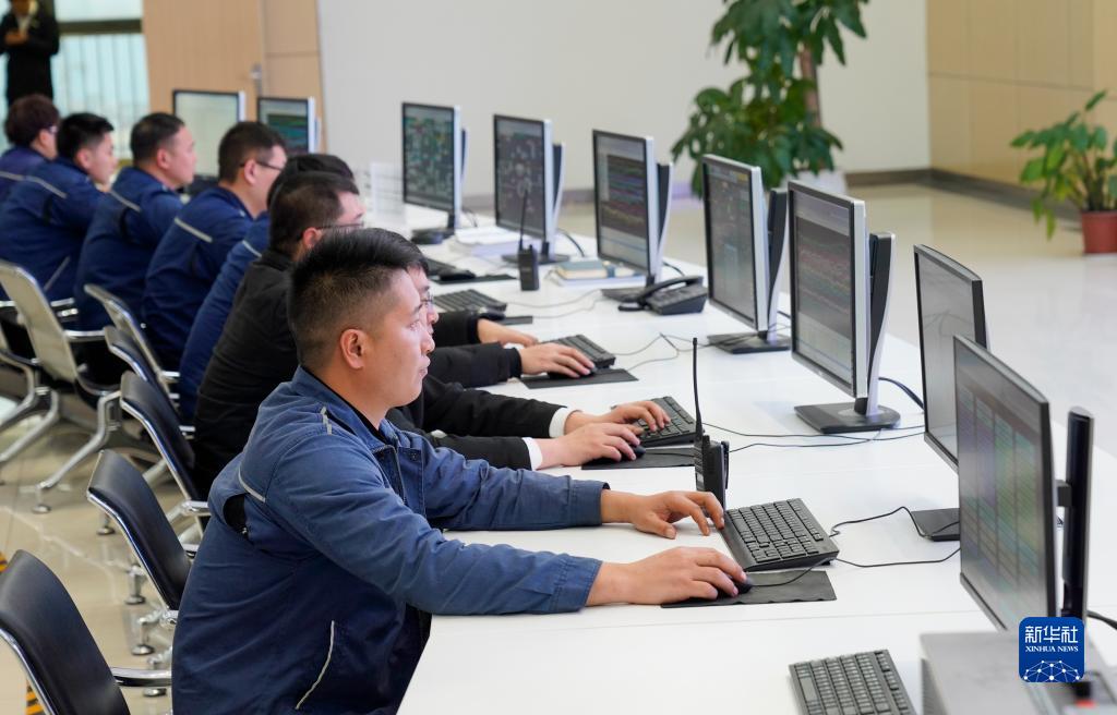 2月16日,在重慶萬凱新材料科技有限公司中央控制室,技術(shù)人員利用智能化工業(yè)控制設(shè)備監(jiān)控PET高分子新材料生產(chǎn)情況。
