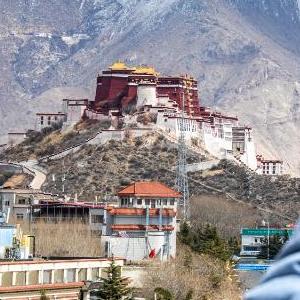 越過拉魯濕地眺望布達拉宮(2月24日攝,手機照片)。
