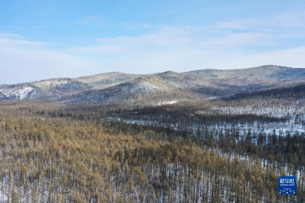 2月22日拍攝的內蒙古森工集團滿歸森工公司烏龍岱林場景色(無人機照片)。