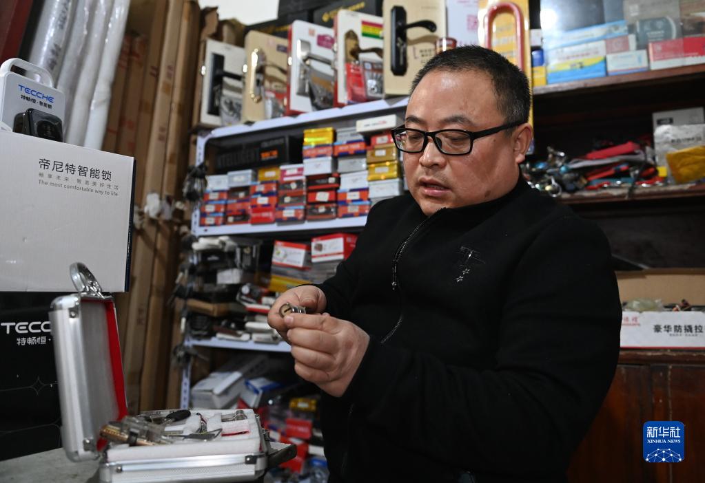 2月23日,在西安市灞橋區,殘疾人鎖匠蘇小泉練習開鎖技術。