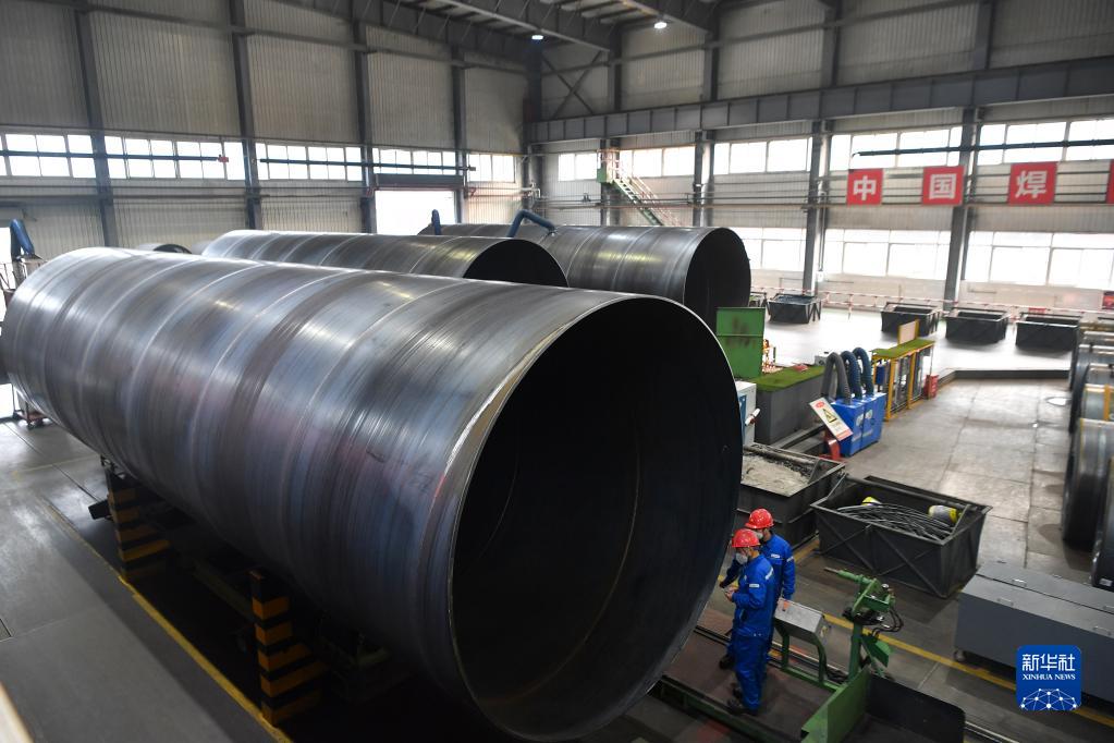 2月9日,在位于陜西省寶雞市的寶雞石油鋼管有限責(zé)任公司生產(chǎn)車間,工人在檢查陜西引漢濟(jì)渭工程即將使用的管材。