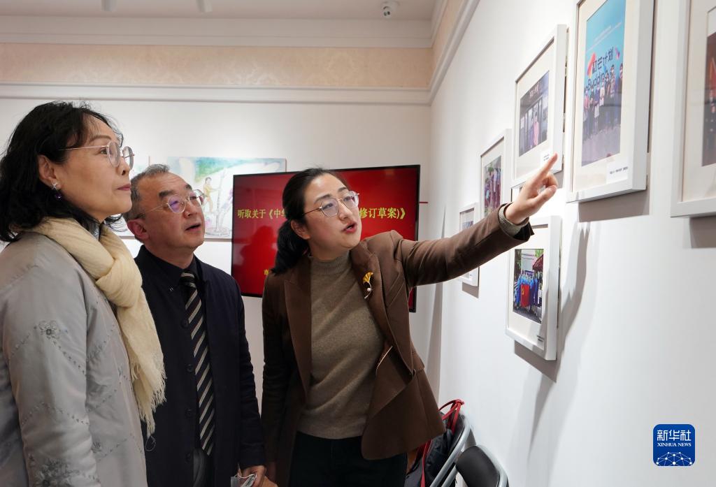 2月7日,在上海虹橋街道古北市民中心召開的立法意見征詢會后,盛弘(右一)和參會代表交流。新華社記者 劉穎 攝