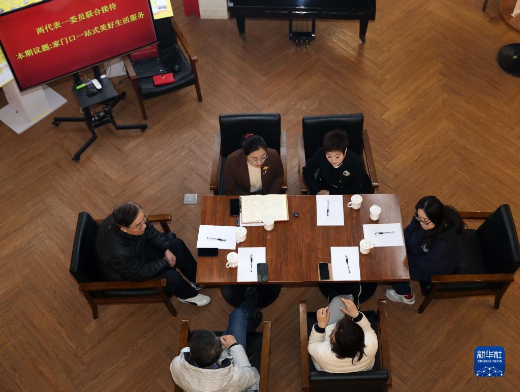 2月17日,在上海虹橋街道古北市民中心,盛弘和居民區(qū)代表討論社區(qū)服務(wù)功能的相關(guān)議題。新華社記者 劉穎 攝
