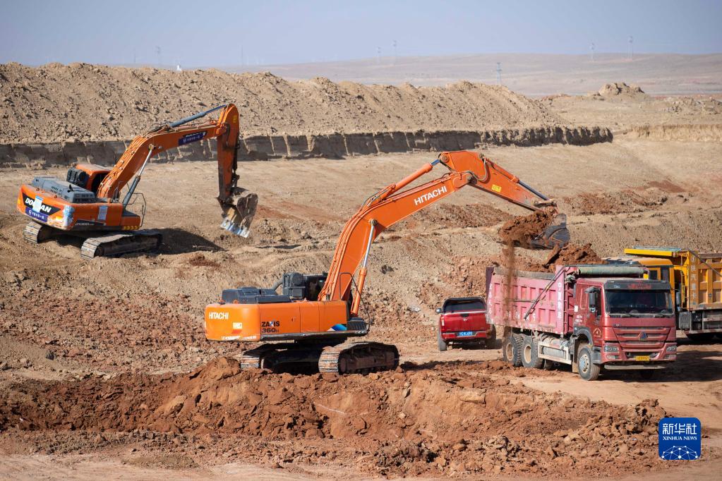 這是2月24日拍攝的寧夏同心縣韋州鎮現代高效節水農業項目施工現場。
