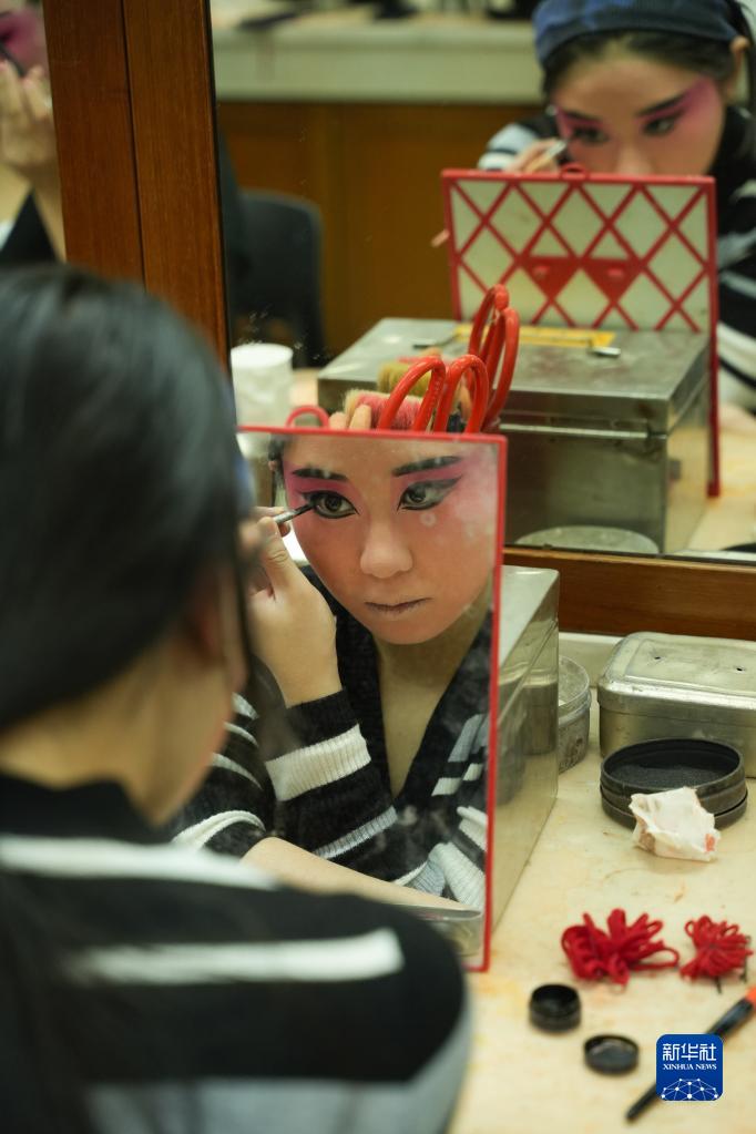 2月25日,石家莊市評劇院一團演員在北京全國地方戲演出中心化裝。