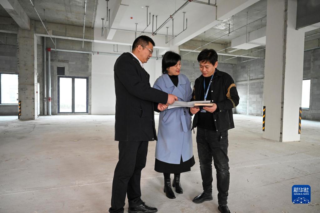 在天津中關村醫(yī)療器械園,張曉鳳(右)與同事現(xiàn)場辦公(2月23日攝)。今年42歲的張曉鳳曾在北京中關村醫(yī)療器械園工作,2019年落戶到天津?qū)氎婢┙蛑嘘P村科技城,并參與天津中關村醫(yī)療器械園的園區(qū)建設管理工作。張曉鳳希望公司業(yè)績越來越好,每個人工作順利,孩子學業(yè)有成。