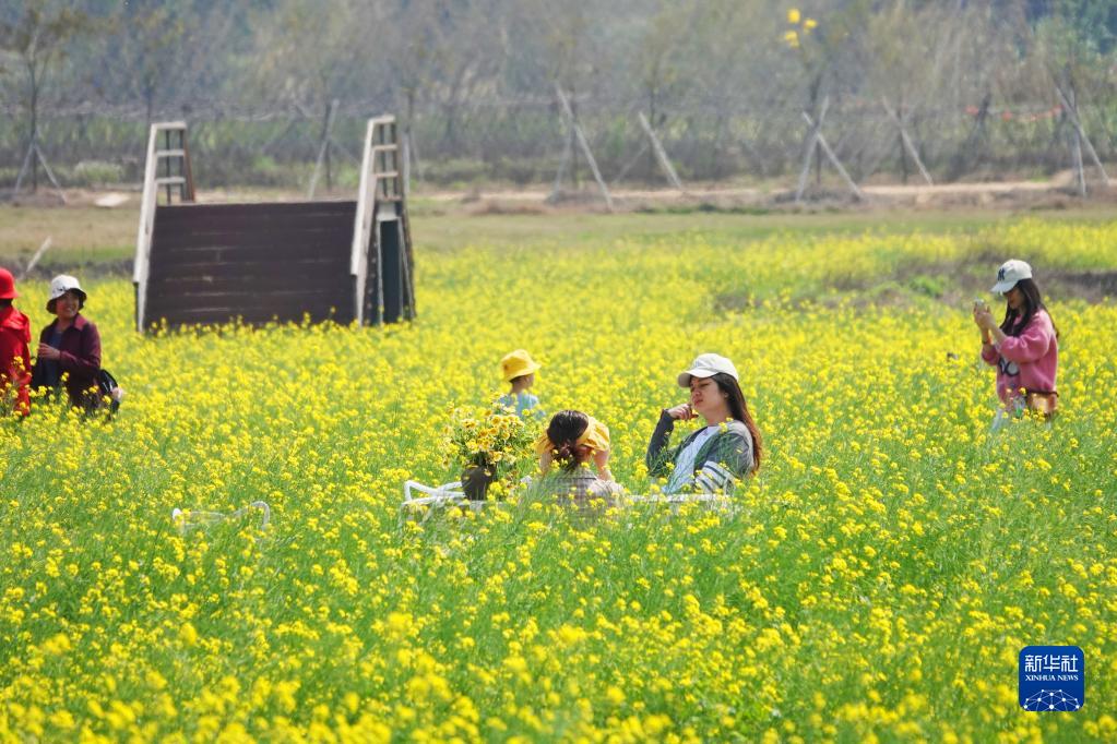2月25日,游人在廣西南寧市江南區(qū)三江坡古村油菜花田賞花游玩。