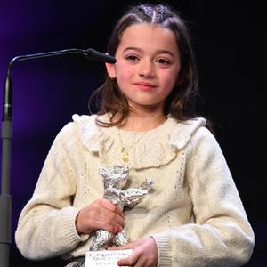 2月25日,在德國柏林,西班牙小演員索菲婭·奧特羅在頒獎儀式上領獎。索菲婭·奧特羅憑借影片《兩萬種蜜蜂》獲得最佳主角銀熊獎。